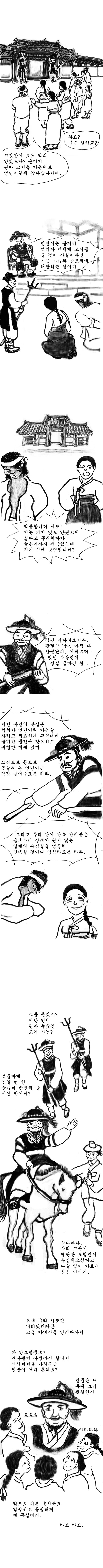 다음날 관청에 고소를 하니, 수령이 잠시 가두었다가 바로 풀어주었다. 이 소식을 들은 사람들은 모두 놀라면서 분통을 터뜨렸다. 분명 술자리에서 느슨하게 처벌해 달라는 청탁을 받아들였을 것으로 추측했다. 관아에 뇌물을 바친 자나, 이를 받아들이고 죄인을 풀어준 수령 모두 한 통속, 똑같은 자들이었다.
