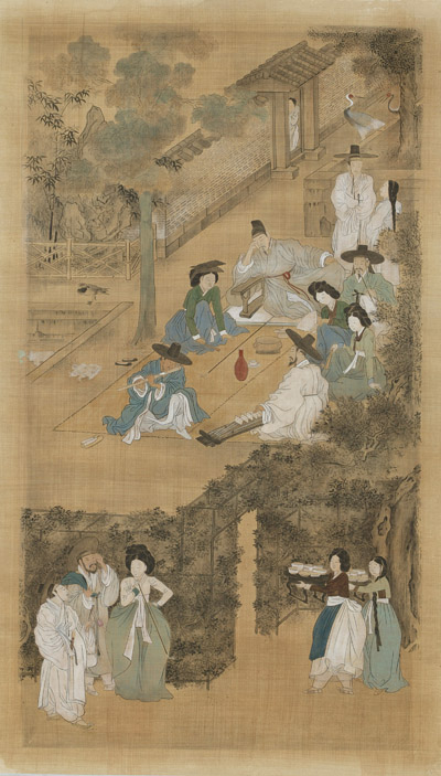 〈후원유연(後園遊宴)〉 부분 《행려풍속도 8폭 병풍(行旅風俗圖八幅屛風) 복제품》 8폭 중 제4폭