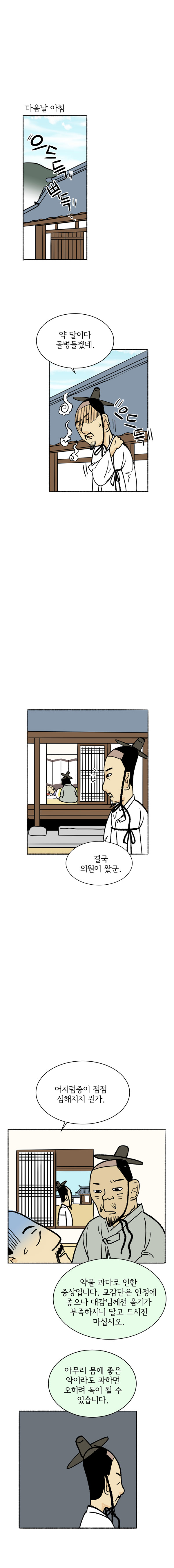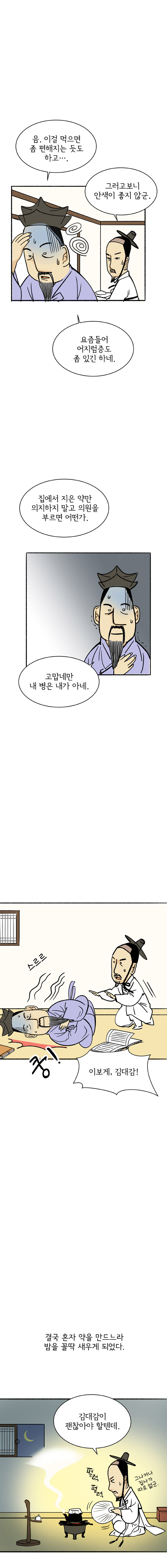 1635년 11월에 아우들과 함께 약을 조제하는 것으로 시작하여, 1637년 2월 7일에는 기를 보충하는 보기탕(補氣湯)을 지었다. 닷새 후에는 약에 대해 잘 아는 이 군위(李軍威)가 재종숙 김령(金坽)의 집에 있다는 것을 듣고 약에 대해 물어보러 가 보았으나, 이 군위는 이미 떠나고 없었다. 여름의 무더위가 한창이던 7월에는 아들 염과 조카들을 모아 함께 약을 지었다. 자신도 복통을 앓고 있었지만 조카며느리도 앓고 있는 터라 더욱 약을 짓는 일이 중하게 느껴졌을 것이다.