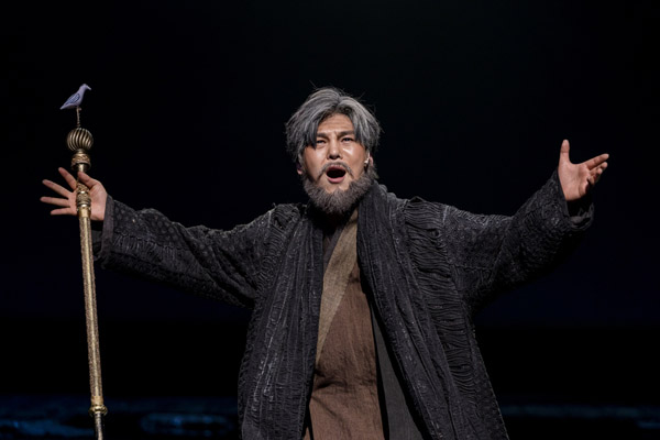 창극 〈물:리어〉에는 강이나 바다가 직접적으로 등장하지는 않는다. 하지만 바다는 언제나 어리어 있고 폭풍우가 리어의 심정을 대변하며 몰아친다. 분노와 슬픔으로 폭풍우여 몰아치라고 소리 지르지만 그의 깨달음은 늘 너무 늦다. 셰익스피어의 ‘리어왕’에서 ‘물’은 지구의 구성요소로서의 물이 아니라 담기는 그릇에 따라 바뀌는 인간 내면의 불안정성과 그럼에도 불구하고 모든 걸 씻어내리는 정화, 그리고 내면의 변화를 드러낸다. 비, 폭풍, 눈물, 바다의 이미지로 물은 비이성적이며 감정의 폭발을 보여준다. 폭풍을 정면으로 맞아치는 늙은 리어는 번개와 천둥에 광기를 폭발시키지만 한 편으로는 쏟아져 내리는 비로 한 때 왕이었던 그의 오만과 어리석음을 씻어내리고 정화된다. 극 초반 입만 산 첫째 딸과 둘째 딸의 아첨을 눈치채지 못하고 코딜리어의 진심을 오해하는 장면은 관객들의 공감을 사지 못한다. 모두가 아는데 리어왕 눈에만 보이지 않는 ‘사랑’은 그의 코딜리어에 대한 사랑이 진심인지 자체를 의심하게 만든다. 만인지상(萬人之上)의 삶을 살아온 왕으로서 그의 내면은 이기적이고 자만에 가득찬 어린아이가 자리잡고 있다. 그가 첫째 딸과 둘째 딸의 성을 오가며 그럭저럭 임금으로서의 삶에 만족했다면 비극은 일어나지 않았을 것이다. 하지만 그는 자신에게 불손했다는 이유 하나로 딸들에게 준 권력을 돌이키고 그들을 응징하려고 한다. 그러나 돌이켜 보면 그가 얼마나 막내만 편애하며 첫째와 둘째를 무시했을지는 안 봐도 뻔한 일이다. 그의 딸들은 그 자신의 초상과도 같다. 그러기 때문에 그의 딸들은 그와 함께 죽음을 맞이해야 할 운명인 것이다. 창극 〈물:리어〉는 그렇게 물속으로 가라앉는다. 이 작품을 보며 아쉬운 것은 리어왕 역을 꼭 젊은 배우가 해야 했는가, 김준수 배우가 매우 잘했음에도 불구하고 국립창극단에 이 역할을 할 배우가 정녕 젊디젊은 배우밖에 없는가 하는 의문이다.