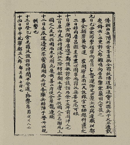 『고대일록』(1593년 10월 11일)에 있는 ‘명나라 군사 30명 익사(낙동강 도하 시)’ 기록 (출처: 한국국학진흥원)