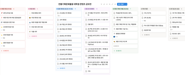회의 기록을 차곡차곡 남긴 노션 페이지의 일부