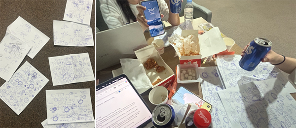 우리는 모두 미디어학부 학생이었기에, 처음에는 자연스럽게 영화나 드라마로 출품 분야가 좁혀질 것이라 생각했다. 그러나 각자의 관심사와 흥미를 하나씩 꺼내놓고 토론을 거듭하다 보니, 단순한 서사물보다 게임적 요소를 결합한 ‘이머시브 추리연극’이 우리 팀의 색깔과 가장 잘 맞는다는 결론에 도달했다. 이 선택으로 인해 서사 뿐 아니라 관객 참여 방식, 단서 설계, 동선, 무대 세트에 이르기까지 기획이 필요한 영역이 두세 배 많아졌지만, 덕분에 우리의 상상력도 그만큼 자유롭게 확장될 수 있었다.